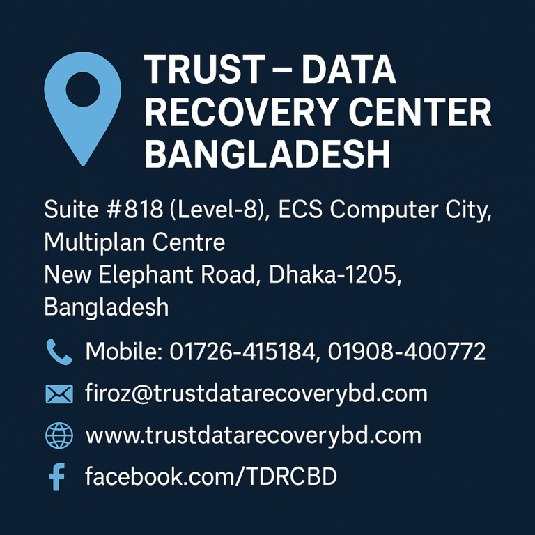 đ ī¸ TRUST â Data Recovery Center Bangladesh Professional Data Recovery Services in Dhaka, Bangladesh Welcome to TRUST â Data Recovery BD, your reliable partner for